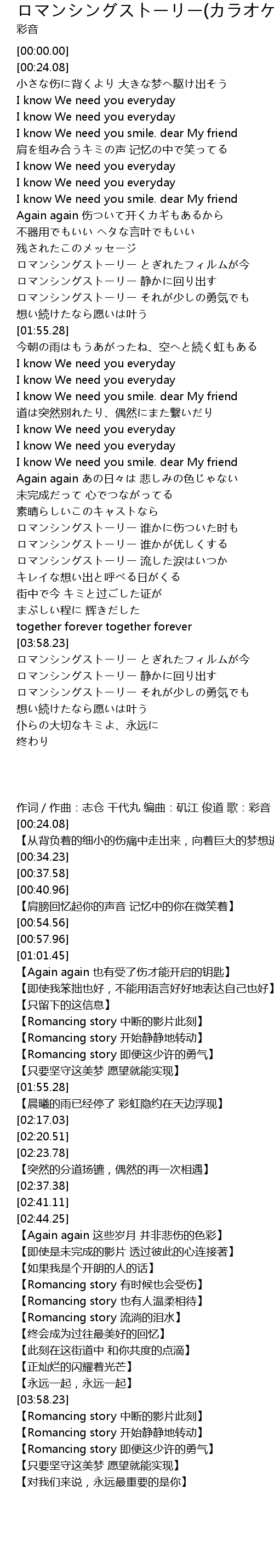 | [03:17.70] | ロマンシングストーリー 谁かが优しくする |