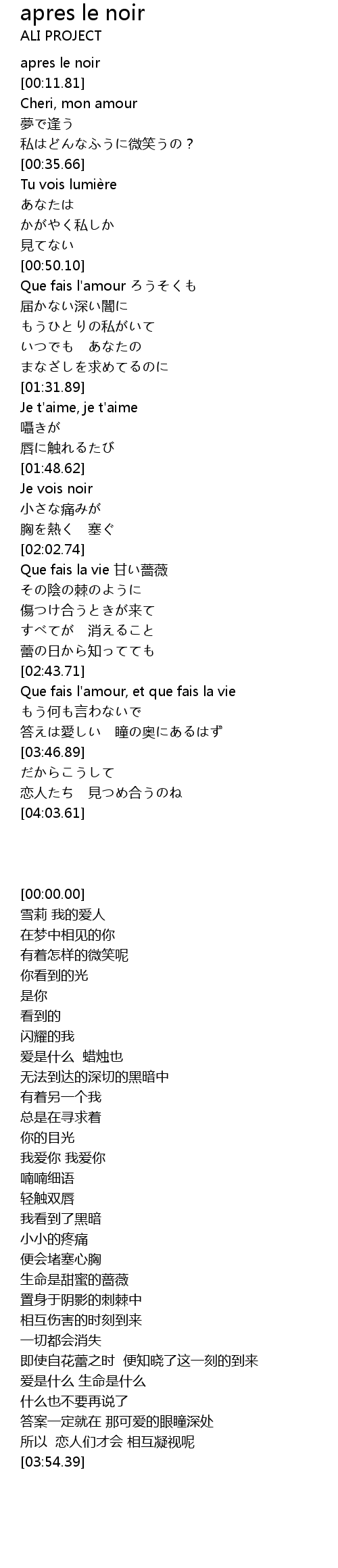 | [02:03.08] | Que fais la vie 甘い薔薇 |