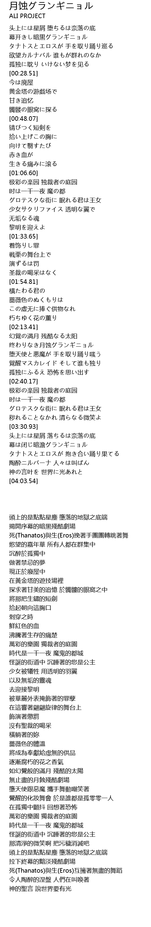 | [03:20.00] | グロテスクな街に 眠れる君は王女 |