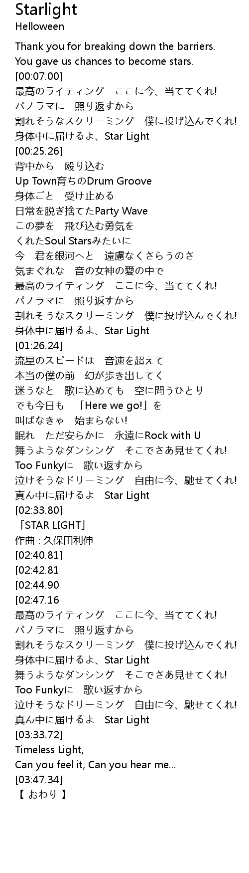 | [03:12.27] | 身体中に届けるよ、Star Light |