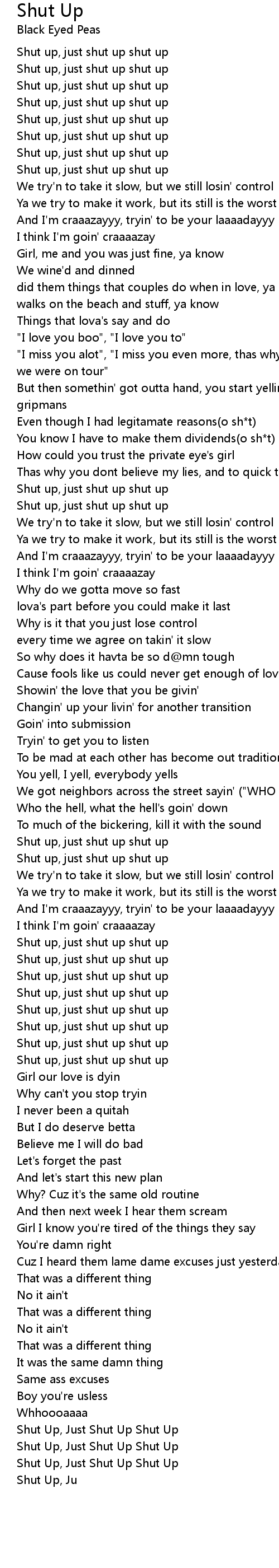Shut Up, Just Shut Up Shut Up |