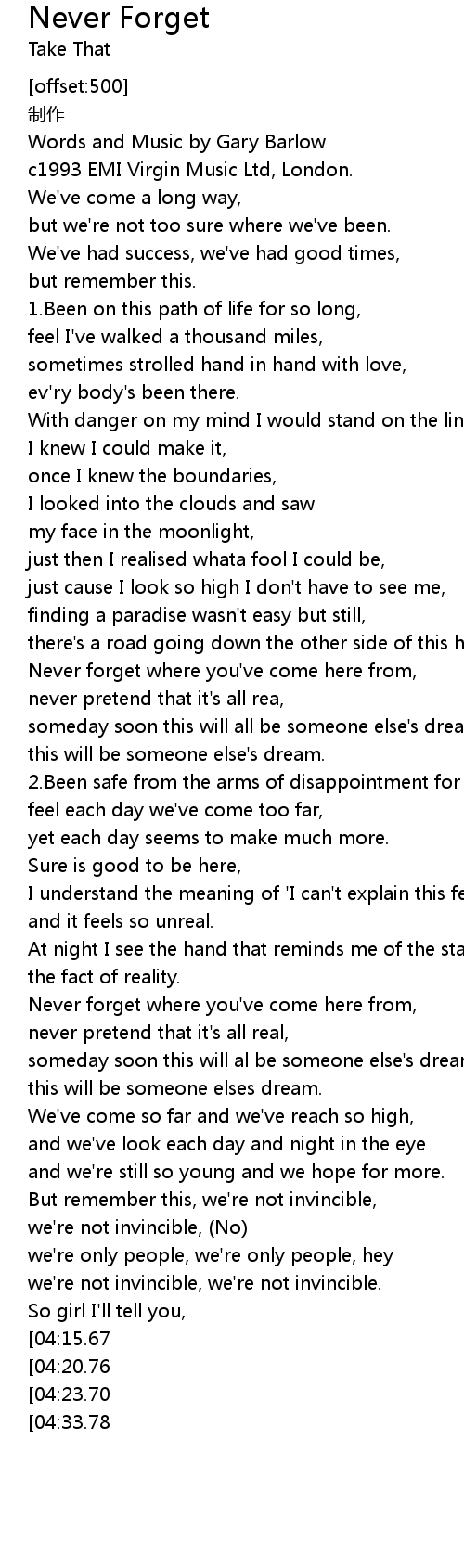 | [04:36.97][04:15.67] | never forget where you' re come here from, |