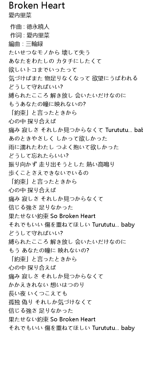 | [02:49.44] | 果たせない約束 So Broken Heart |