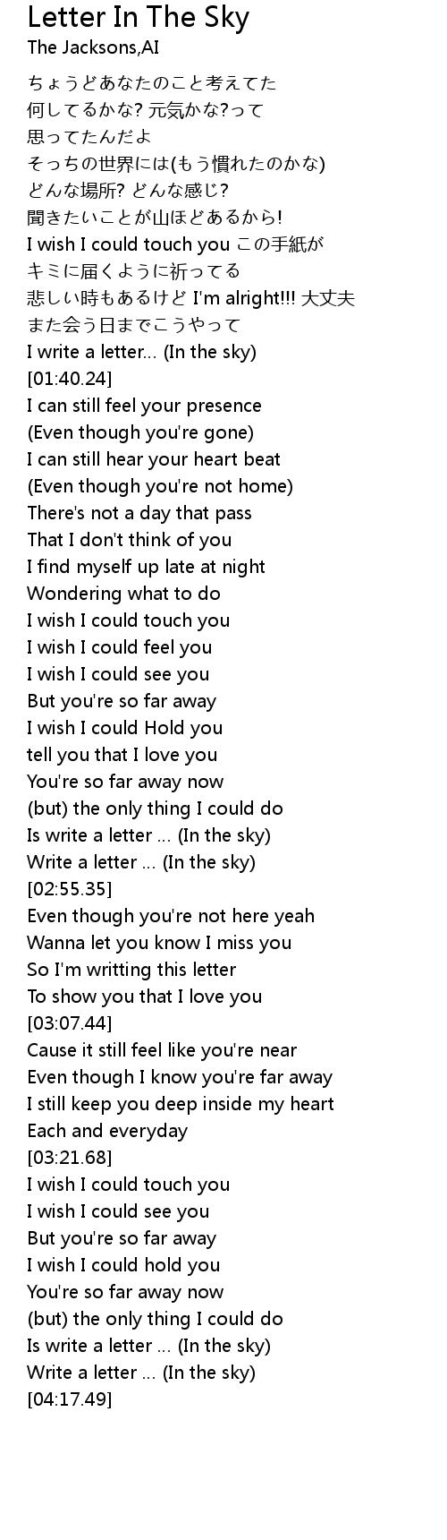 | [00:38.68] | そっちの世界には(もう慣れたのかな) |