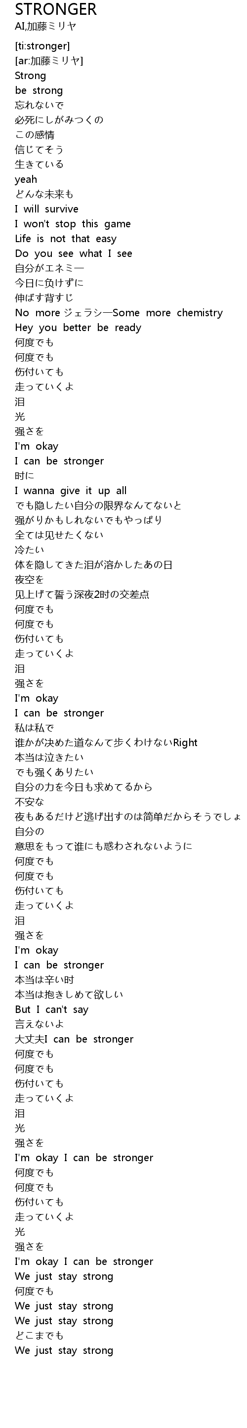 | [03:26.755] | 大丈夫I can be stronger |