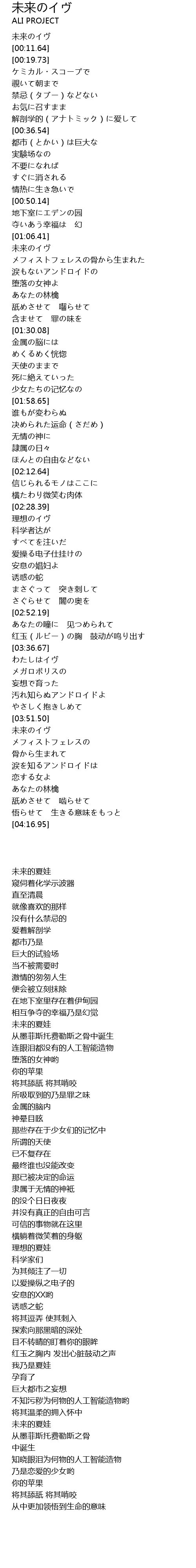 | [03:44.88] | 汚れ知らぬアンドロイドよ |