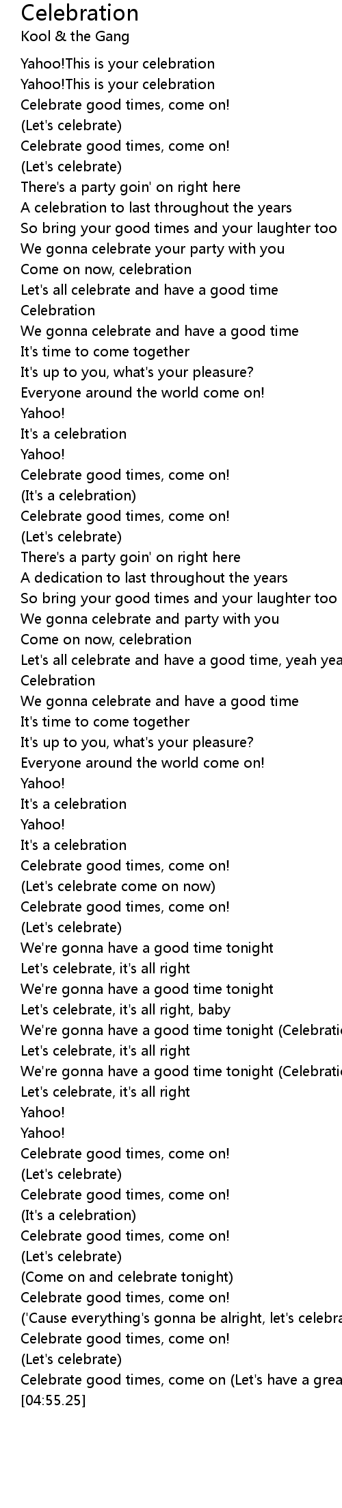 Let's all celebrate and have a good time, yeah yeah |