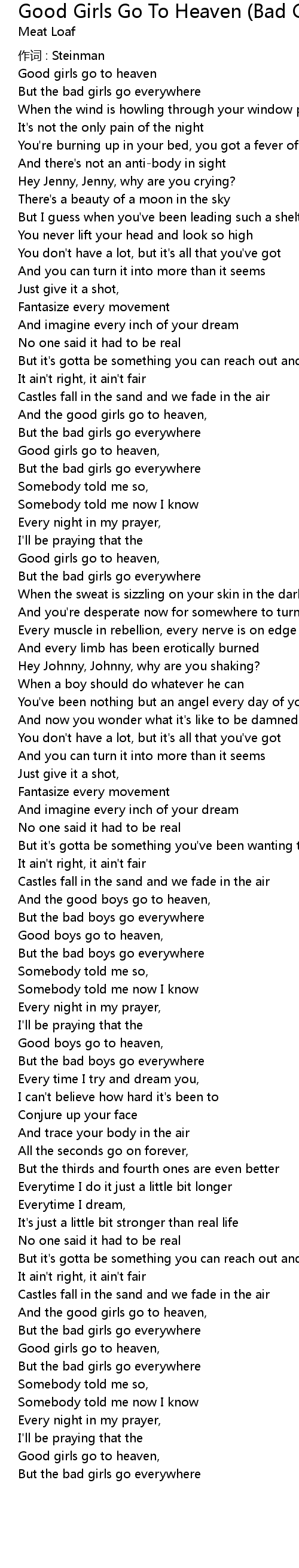 | Song | Good Girls Go To Heaven (Bad Girls Go Everywhere) |