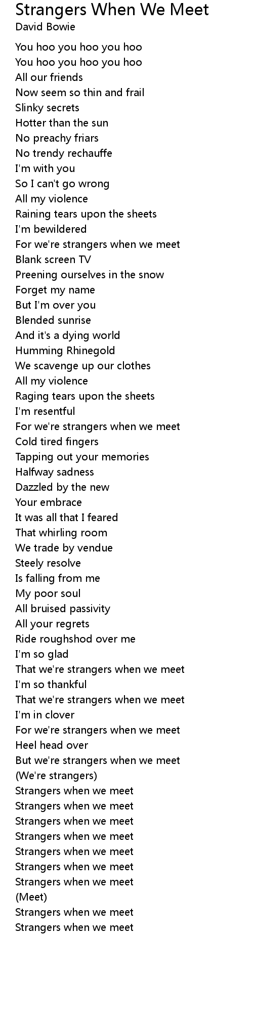 For we're strangers when we meet |