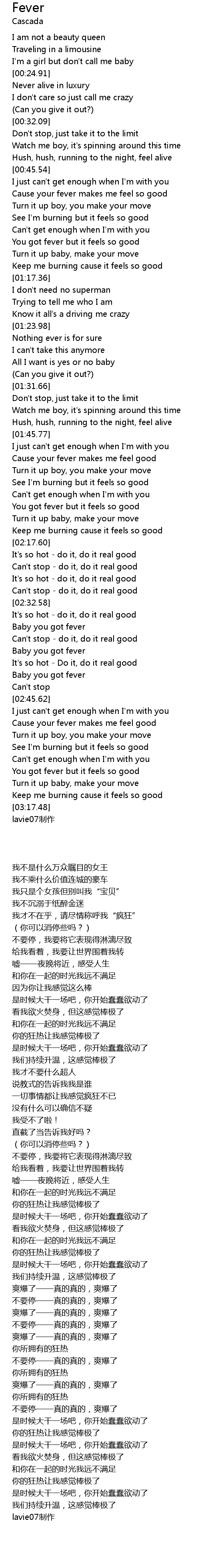 | [02:50.60] | Cause your fever makes me feel good |