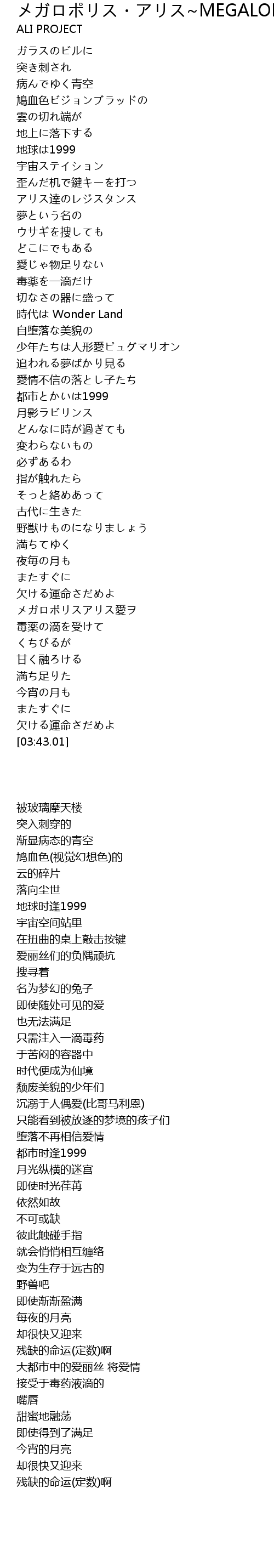 | [02:21.59] | メガロポリスアリス愛ヲ |
