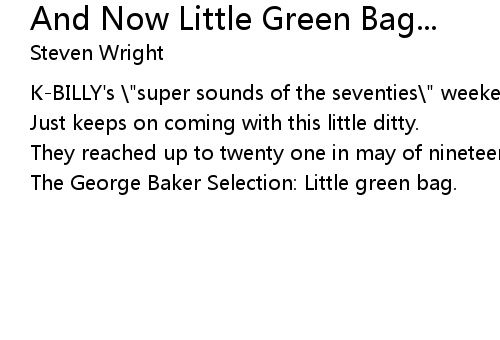 | [00:11.080] | The George Baker Selection: Little green bag. |