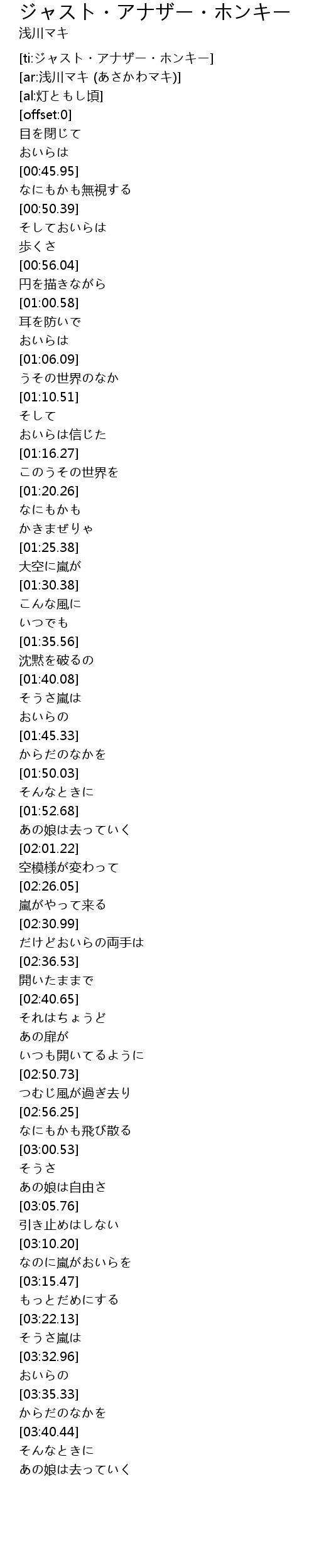 | [ti:ジャスト・アナザー・ホンキー] | |