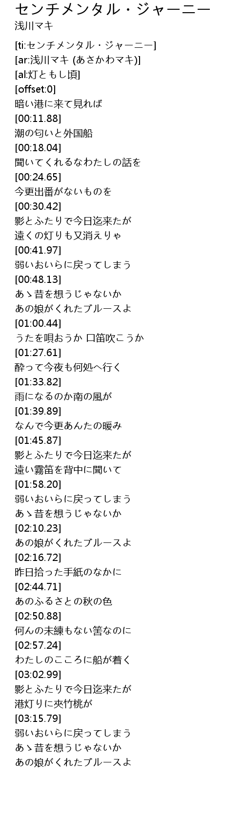 | [ti:センチメンタル・ジャーニー] | |