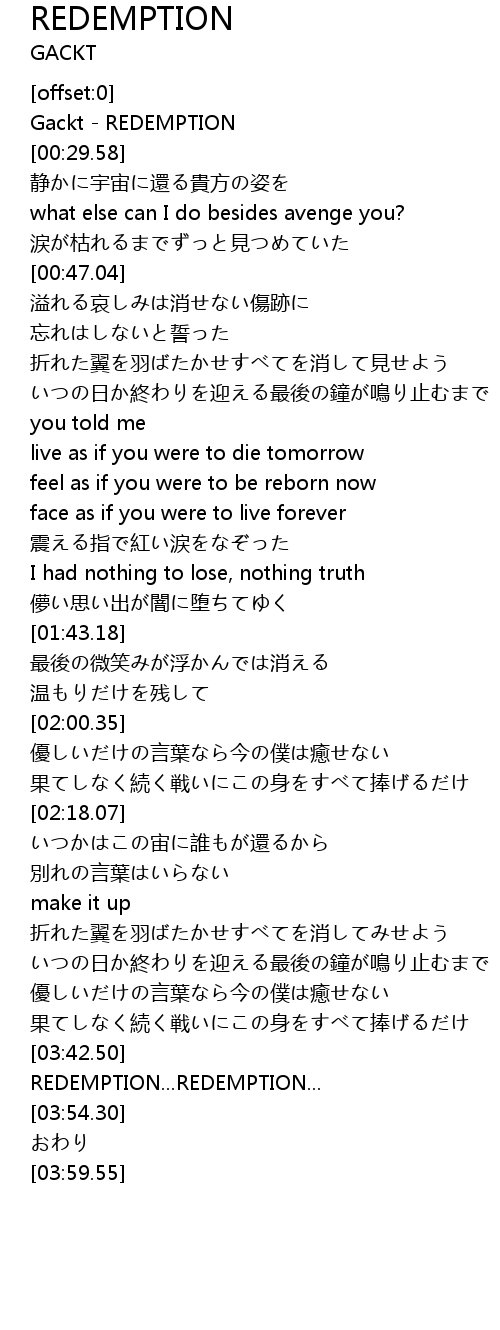 | [03:44.70] | REDEMPTION... REDEMPTION... |
