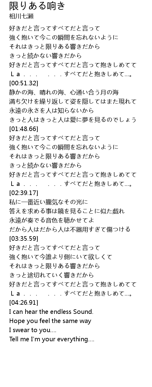 | [03:13.87] | 永遠が奏でる音色を聴かせてよ |