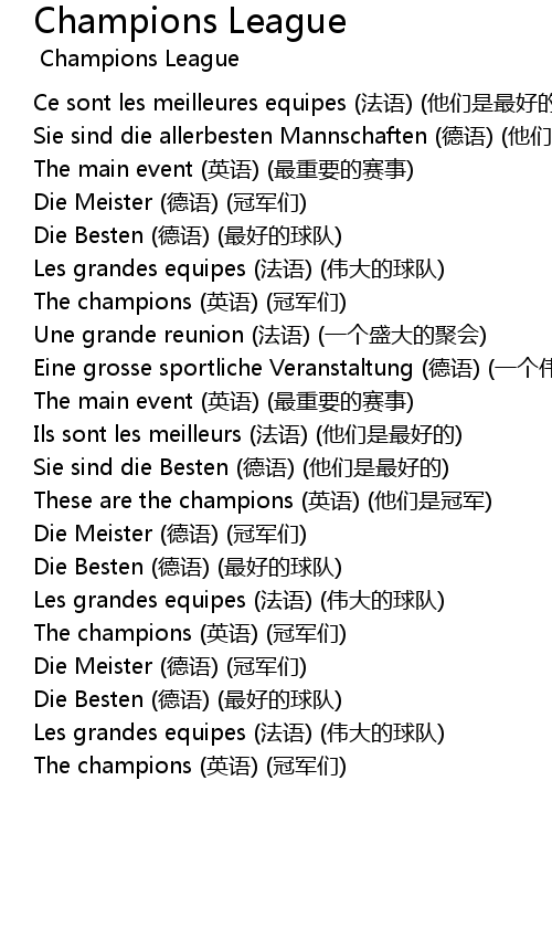 | These are the champions yīng yǔ tā men shì guàn jūn | |