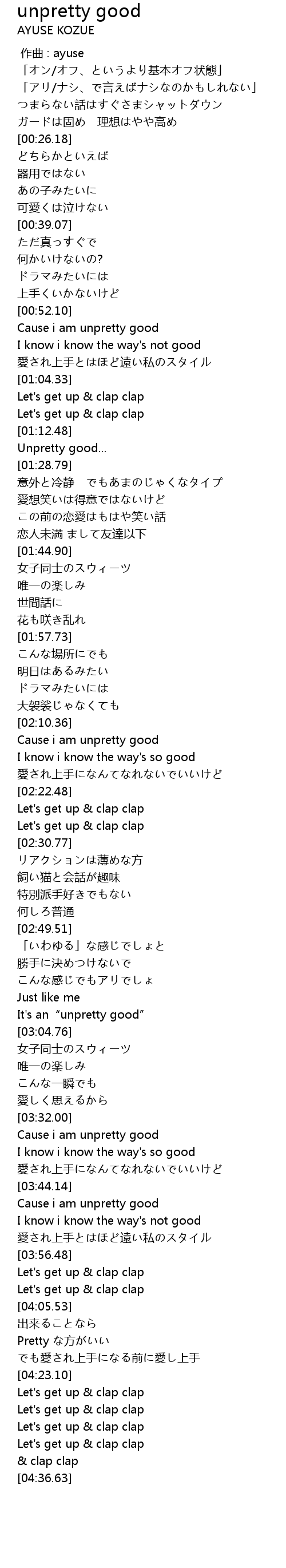 | [03:44.38] | Cause i am unpretty good |