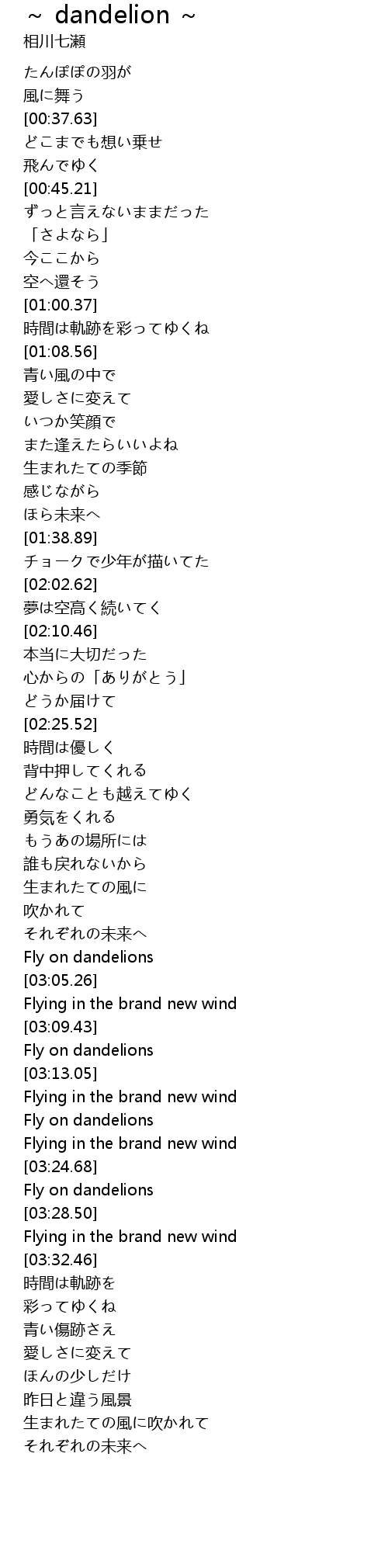 | [01:01.61] | 時間は軌跡を彩ってゆくね |
