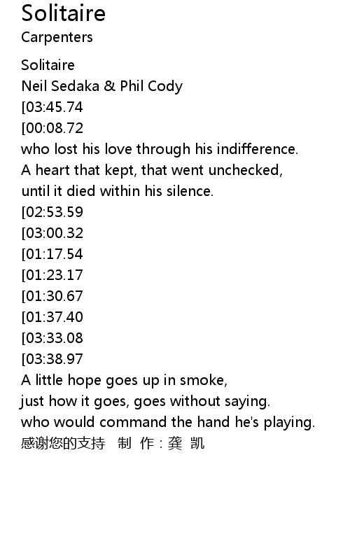 | [00:00.89] | Solitaire |