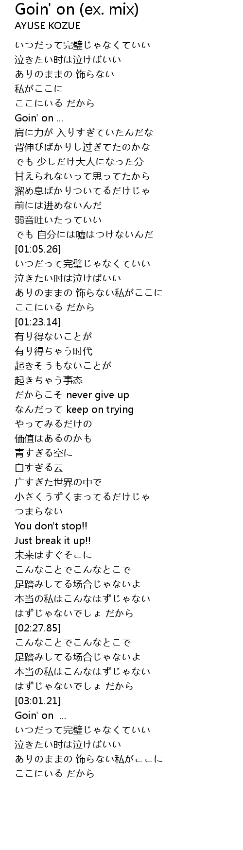 Goin' on (ex. mix) Lyrics