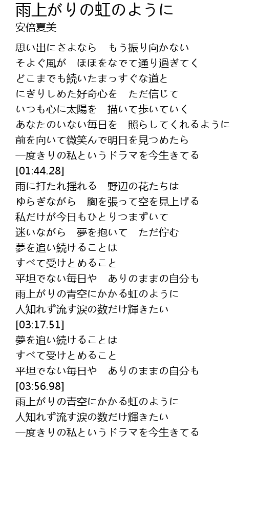 | [03:59.30] | 雨上がりの青空にかかる虹のように |