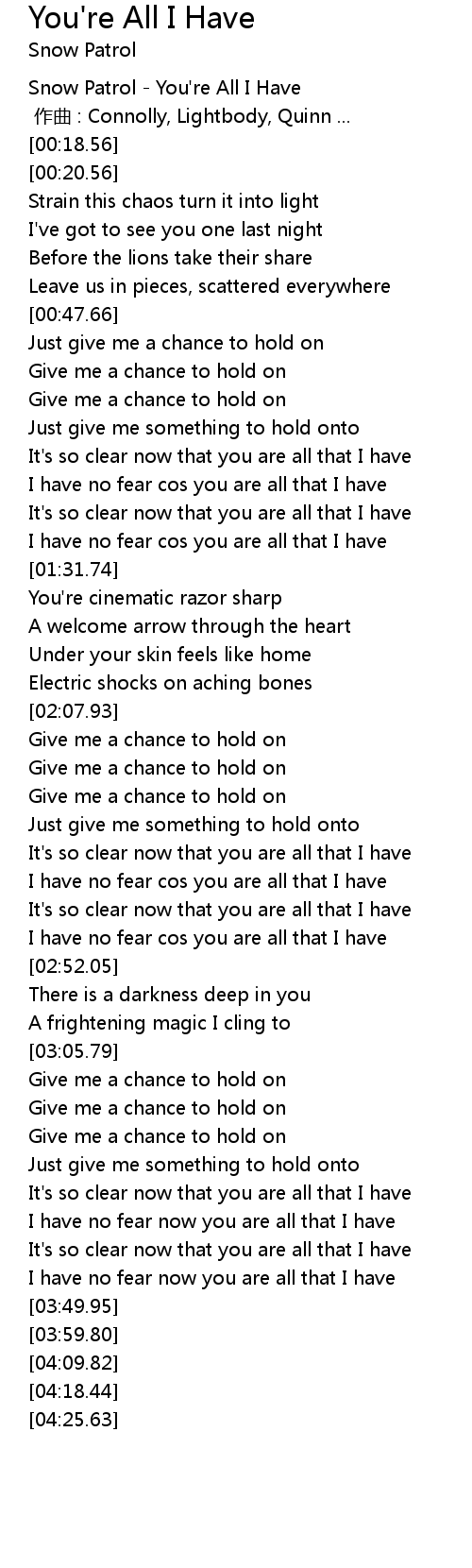 | [00:-0.50] | Snow Patrol You' re All I Have |