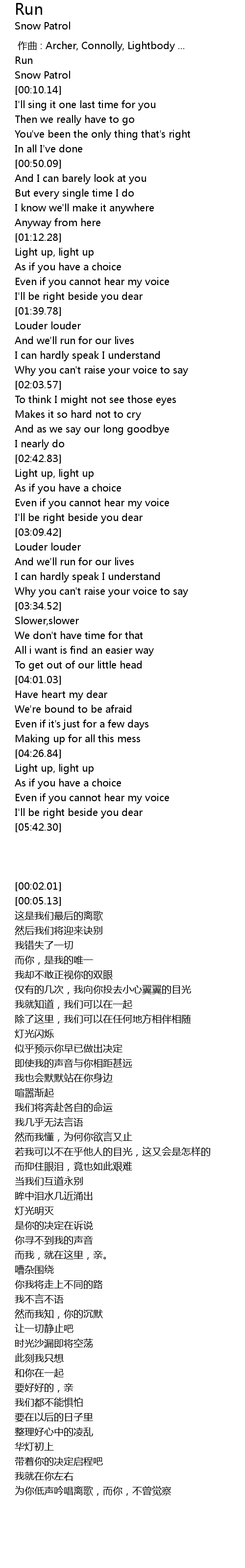 | [00:05.13] | Snow Patrol |
