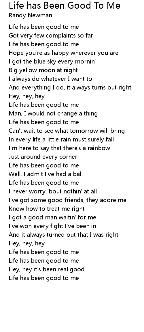 Life has been good to me |