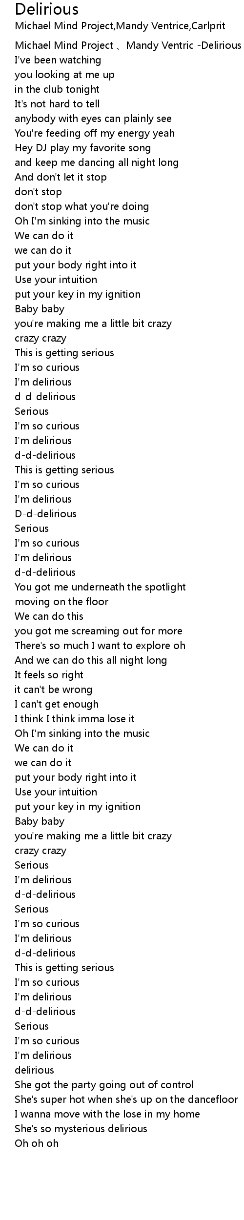 | [00:48.457] | I' m delirious |