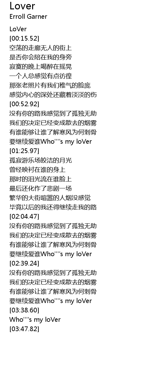| [01:19.96] | yao ji xu ai shui Who'''' s my loVer |