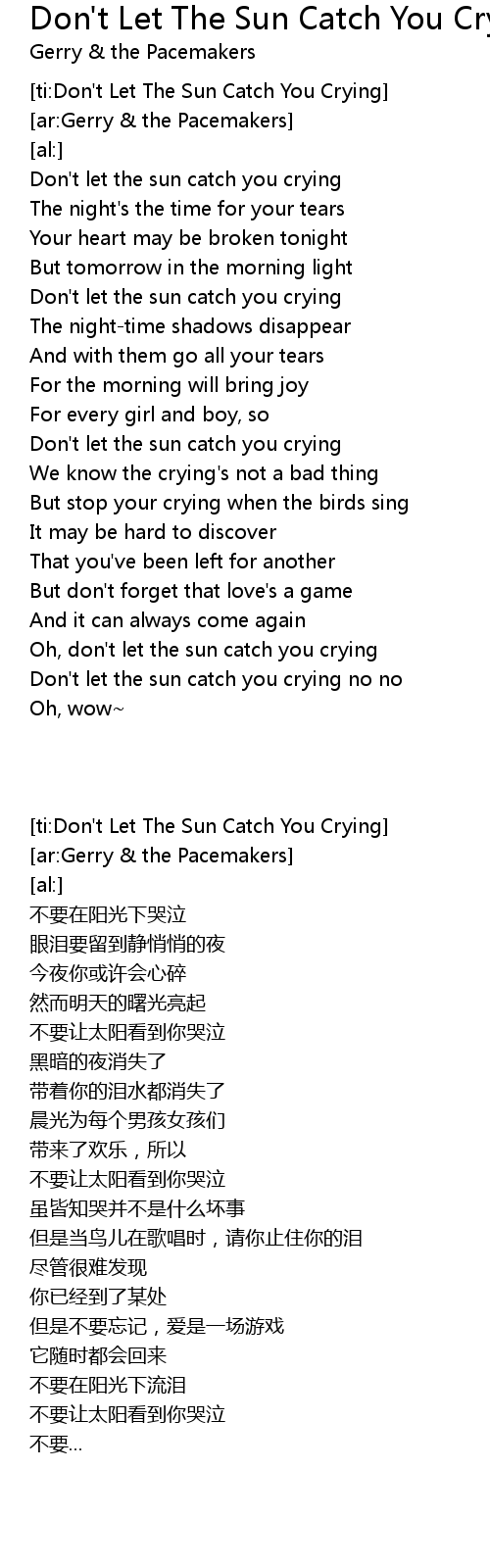 [ti:Don't Let The Sun Catch You Crying] |