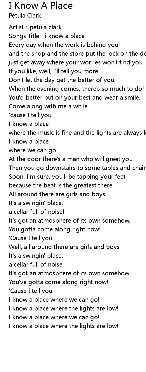 | Songs Title: i know a place | |