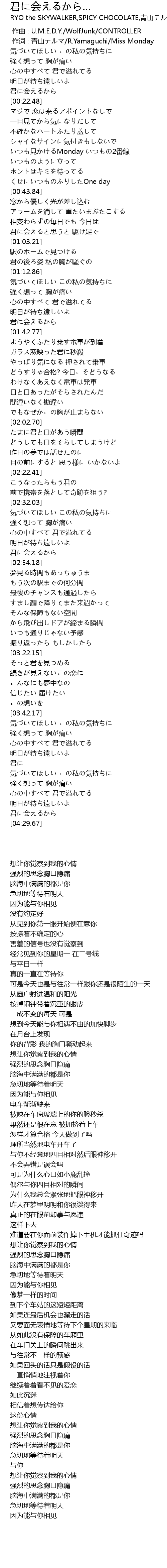 | [00:19.75] | 君に会えるから |