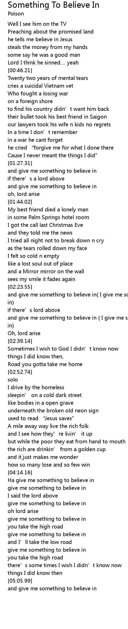 | [02:25.79] | and give me something to believe in( I give me something to believe in) |
