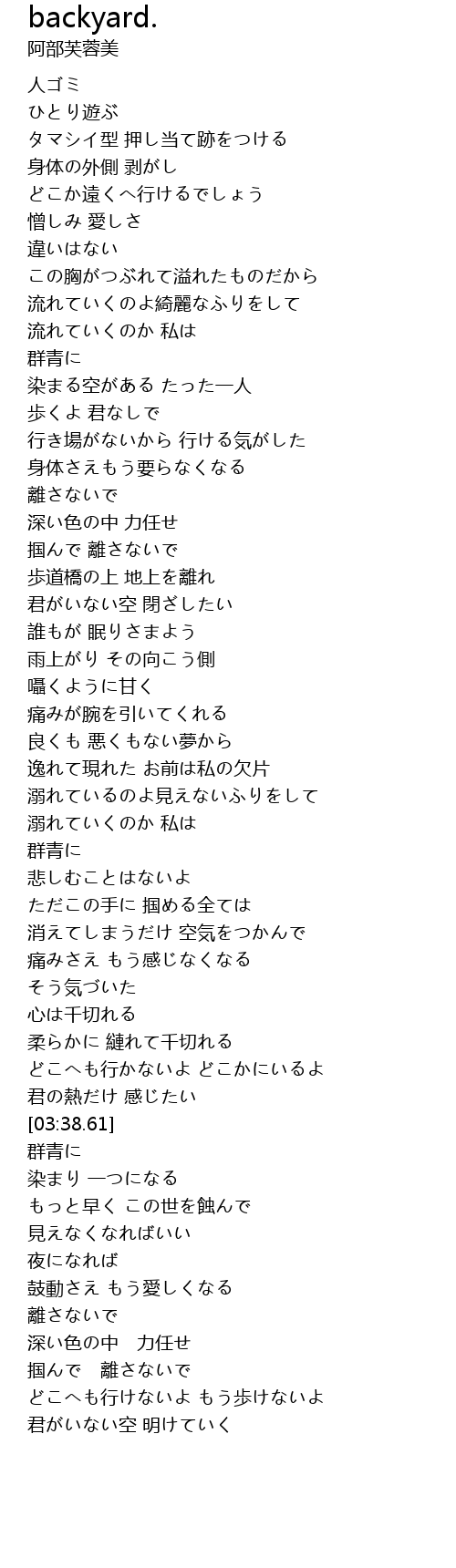 | [03:21.70] | どこへも行かないよ どこかにいるよ |