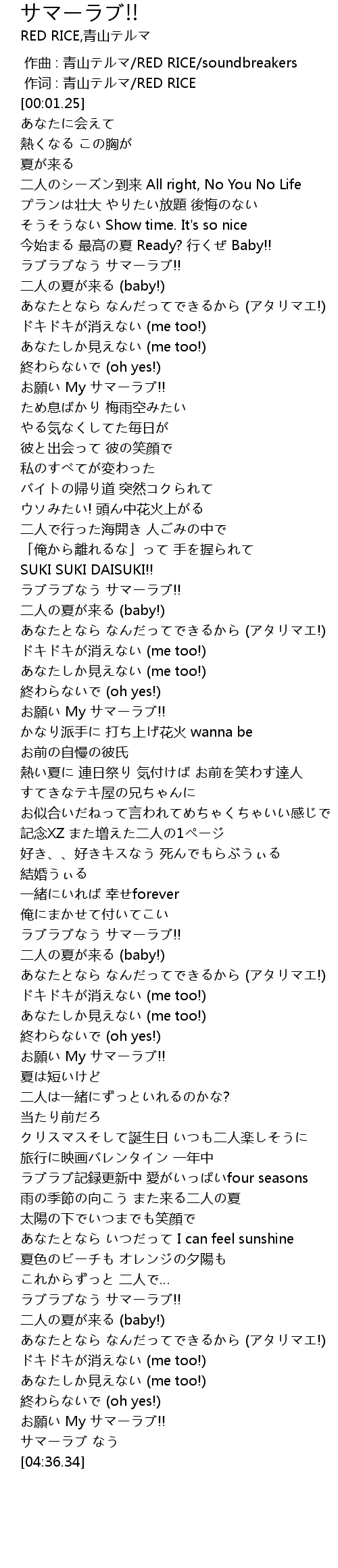 | [04:33.72] | サマーラブ なう |