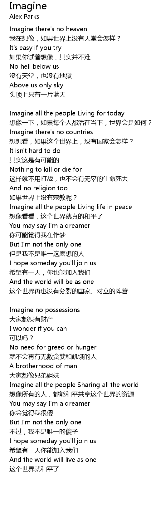 | Imagine all the people Living life in peace | |