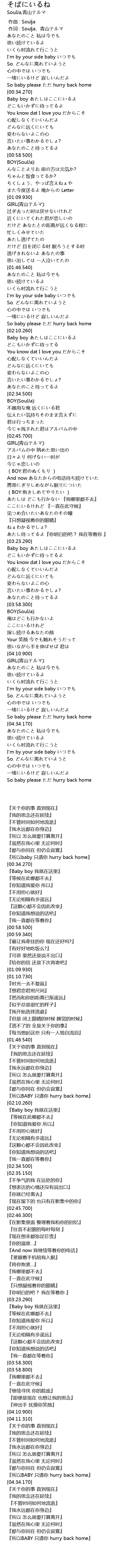 | [02:07.610] | So baby please ただ hurry back home |