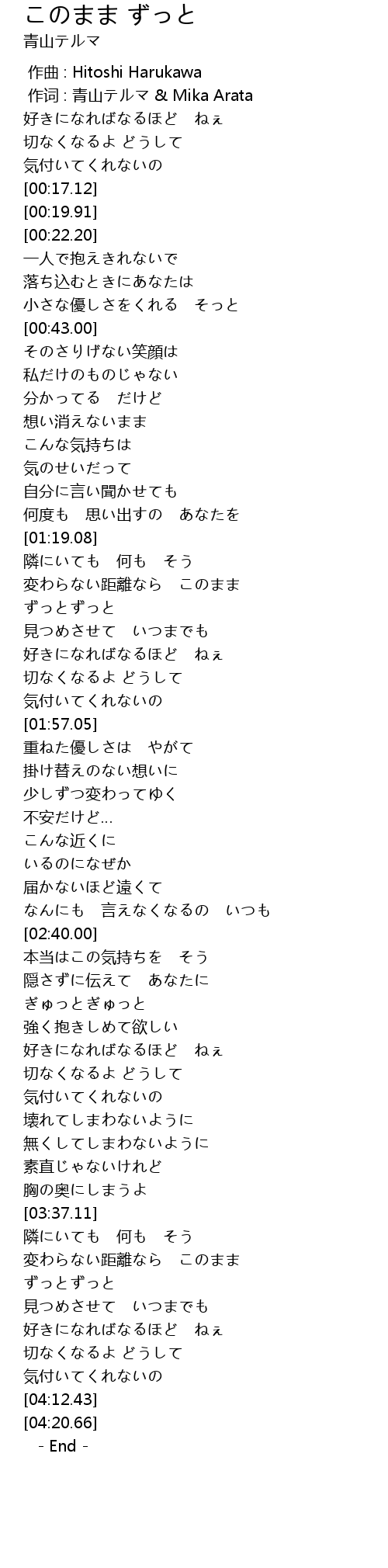 | [00:00.333] | 作词 : 青山テルマ & Mika Arata |