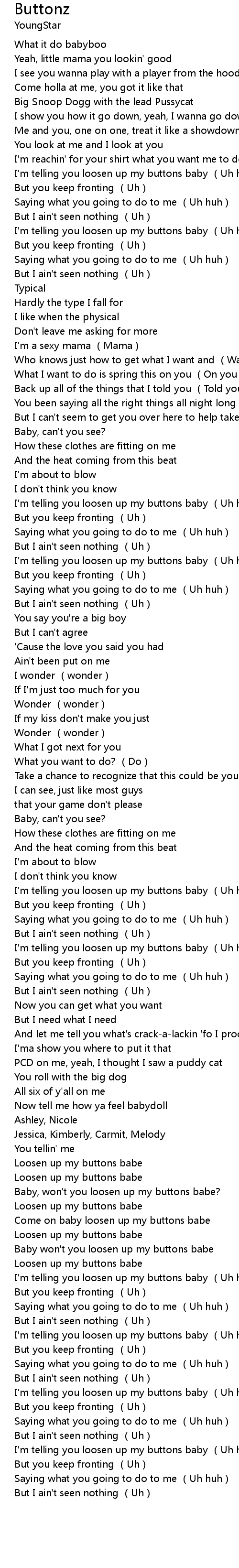 | I'm telling you loosen up my buttons baby (Uh huh) | |