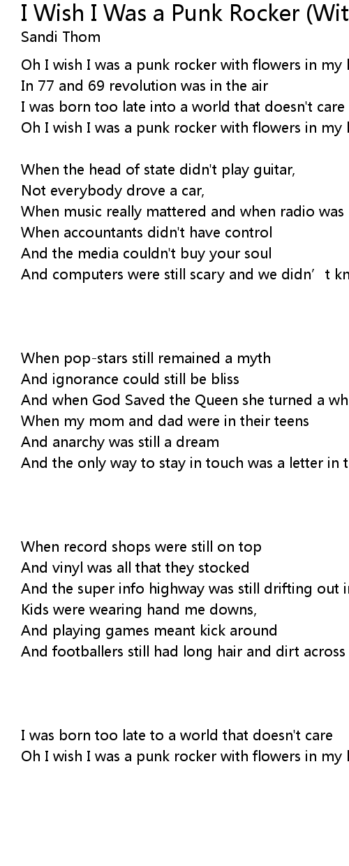 | Oh I wish I was a punk rocker with flowers in my hair |