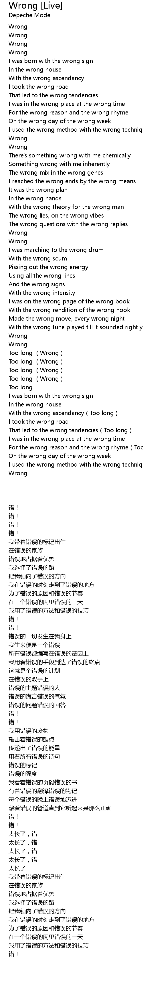 | [03:18.18] | For the wrong reason and the wrong rhyme Too long |