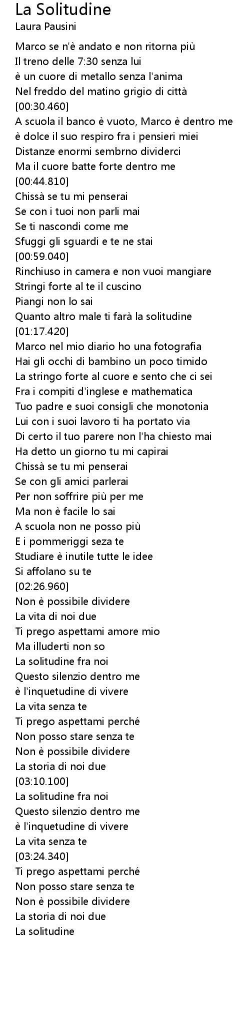 | [01:10.620] | Quanto altro male ti fara la solitudine |