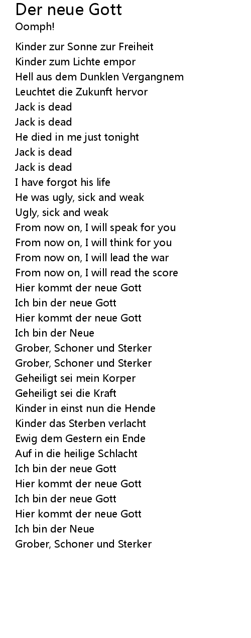 Der neue Gott Lyrics