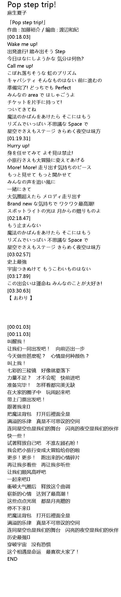 | [00:20.59] | 出発進行! 踏み出そう Step |