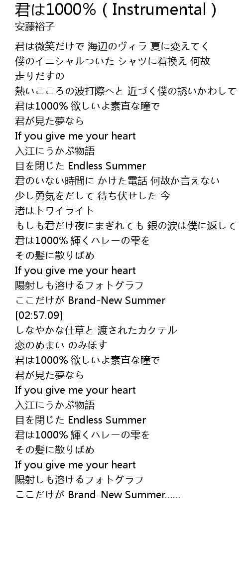 | [03:18.76] | 君は1000% 欲しいよ素直な瞳で |