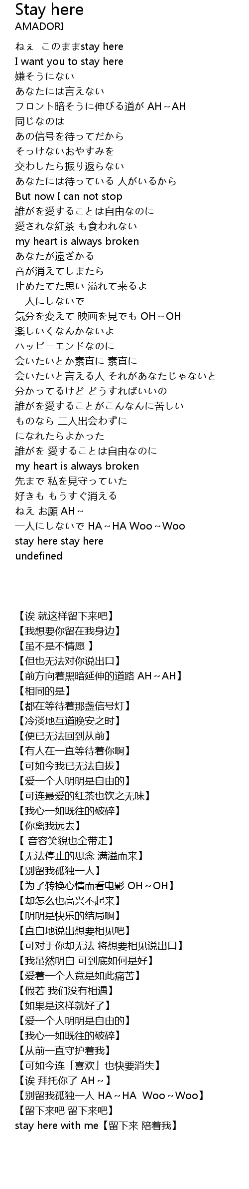 | Song | Stay here |