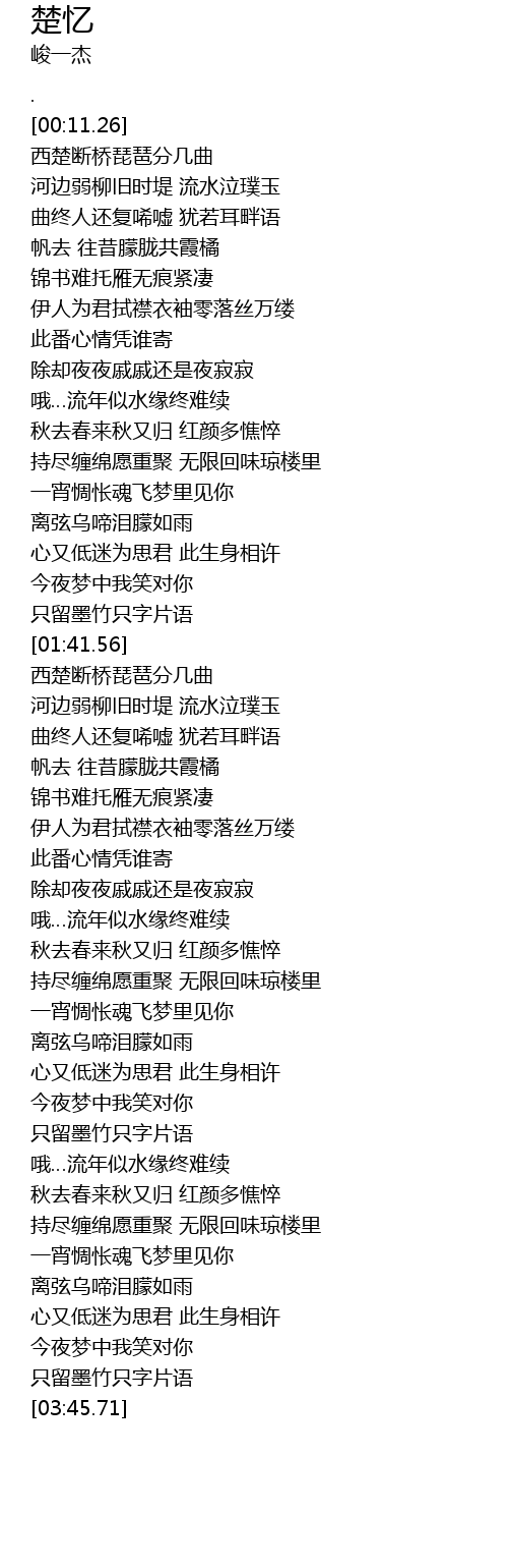 | [01:59.37] | xī chǔ duàn qiáo pí pá fēn jǐ qū |