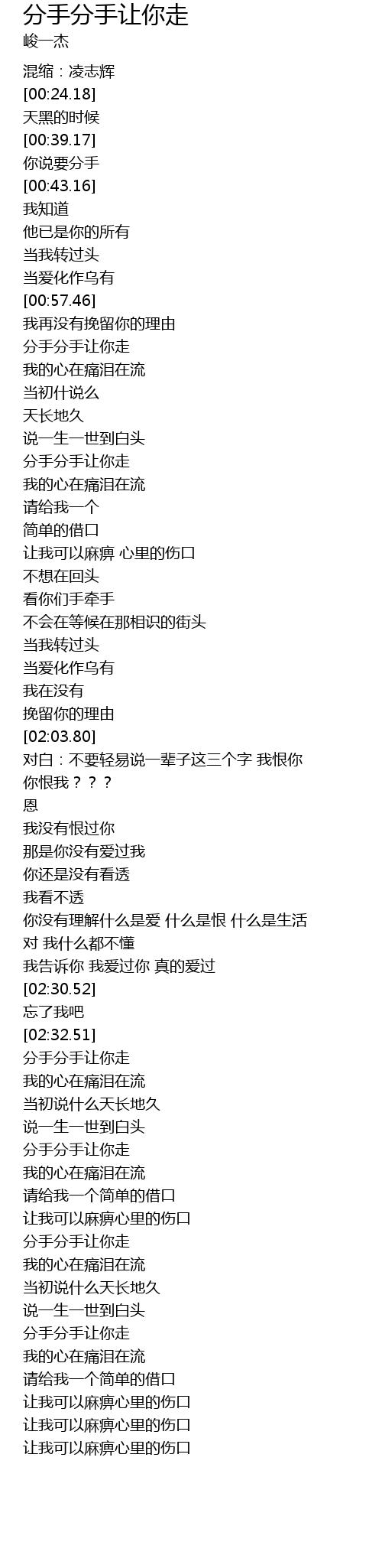 | [02:33.76] | 分手分手让你走 |